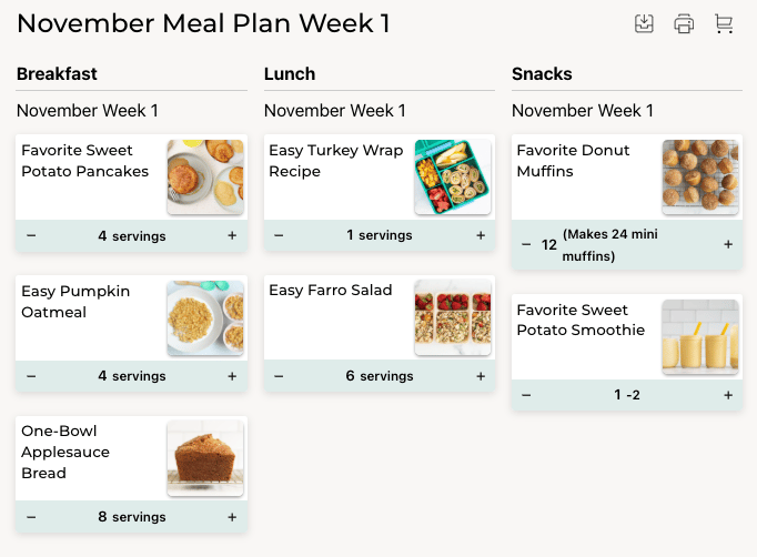 YTF Meal Plan, November Week 1